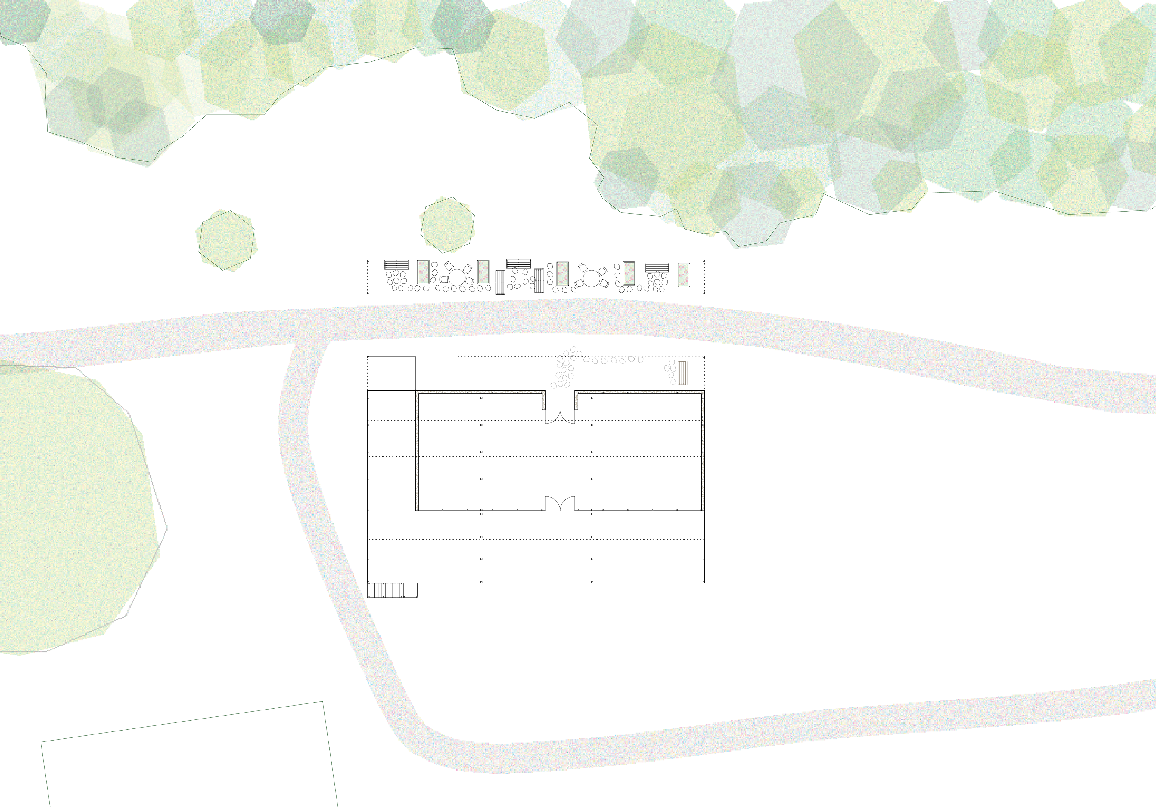 + The greenhouse is strategically placed upon the existing walking path.This is to attract passers by and facilitate the ethos of community.